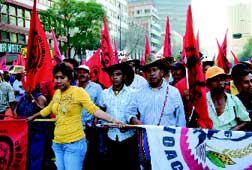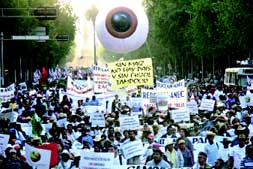 Esteban Lugo, obrero del Sindicato Mexicano de Electricistas: “Esta marcha es de protesta. Ya era hora de que nos uniéramos campesinos, obreros y trabajadores. Rechazamos la entrega del país a intereses extranjeros, nos oponemos a la privatización de la industria eléctrica y del petróleo; queremos que se revise el TLCAN para defender nuestro maíz y frijol. Esta es la protesta de todos los de abajo. No podemos seguir aceptando a este gobierno entreguista. Tenemos que unirnos la gente del campo y la ciudad para luchar juntos porque tenemos conciencia de que sólo así se hará valer la soberanía popular”. Desde el Valle de Mexicali, Antonio Arévalo de la CNC : “El TLCAN no ha favorecido a los campesinos mexicanos, sólo a los agricultores de Estados Unidos. Hoy no gano nada por sembrar trigo, al contrario, pago. Los apoyos oficiales no llegan a tiempo, diesel con descuento tampoco. Esto no puede seguir, ya no podemos dejarnos. Es la hora de hacerse escuchar”.