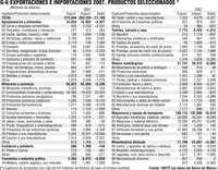 En la comparación por rubros podríamos incluir a la industria automotriz (Gráfico 6, capítulo 87, vehículos) que si bien exportó en 2007 productos por 41 mil 903 millones de dólares, también realizó importaciones por -26 mil 778 millones, por lo que su balance neto fue de 15 mil 115 millones de dólares; y también al turismo (y excursionistas) por el que ingresaron al país 12 mil 901 millones pero salieron -8 mil 378, dejando un saldo de divisas al país de únicamente 4 mil 523 millones de dólares.