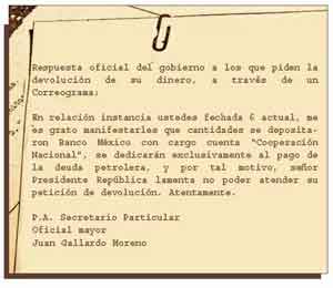 Los esfuerzos del Gobierno encaminados a conjurar la situación planteada fracasaron de preferencia por la incomprensión de las compañías para estimar los factores sociales y humanos implicados y ante la amenaza pública de las mismas de suspender las actividades en los campos petroleros mi Gobierno, consciente del peligro que representaba para la economía nacional la paralización de la industria petrolera, se vio obligado a decretar la expropiación y se encargó del manejo de aquélla, obteniendo de los trabajadores un máximo rendimiento pues al darse cuenta de que no sirven intereses particulares sino que colaboran en una obra de alcance nacional le dedican sus mejores energías, animados de un fuerte espíritu de organización y disciplina con excelentes resultados que apenas llegan a perturbar excepcionalmente las maniobras de agentes de las empresas afectadas. La vinculación sincera de los obreros con el porvenir de la industria llega al punto en que ellos han consentido en postergar la aplicación del laudo mientras dura el boicot organizado por las compañías y a invertir una parte importante de sus ahorros en la misma industria. En la actualidad la industria petrolera no requiere fuertes inversiones; la experiencia ha convencido al Gobierno de que a pesar de las dificultades para vender al precio del mercado, los ingresos por ventas realizadas le han permitido llevar adelante un programa de perforaciones, construcción de oleoductos, modernización y ampliación de refinerías, cuyos resultados se advierten en el incremento cada vez más sensible de la producción y permiten asegurar que el programa mencionado puede desenvolverse con los recursos propios del Estado.