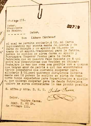 Mediante esta última solución el petróleo se repartiría en el mercado mundial siguiendo sus canales acostumbrados sin trastornar los precios y las compañías tendrían de esta manera la garantía efectiva de recibir el pago de sus inversiones. Lo anterior no descarta la perspectiva de concertar arreglos con las compañías, de mutua cooperación, sin la necesidad de nuevas inversiones. En un esfuerzo para facilitar un arreglo amistoso a las compañías mi Gobierno ha instruido a su Embajador en los Estados Unidos para que presente al representante de las compañías las bases de arreglo que considere conciliatorias y aceptables para las dos partes interesadas. Si se encuentran viables estas sugestiones, el Gobierno se halla pronto para discutir los términos del arreglo correspondiente, creyendo por mi parte que, en cualesquiera de las formas indicadas al mismo tiempo que se toman en consideración los intereses de las compañías quedan a salvo los derechos soberanos del país. Me es grato, señor Presidente, expresar a usted una vez más los votos fervientes que hago por el bienestar personal de Vuestra Excelencia, repitiéndome su atento amigo y servidor. Lázaro Cárdenas |
