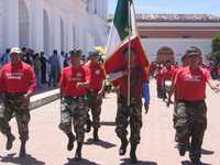 Ataviados con botas, pantalones camuflados, boinas o gorras tipo militar y camisa roja con la leyenda Ejército de Dios, los manifestantes rindieron homenaje a Benito Juárez y honores a los símbolos patrios en el parque de los Arcos, situado atrás del palacio municipal.