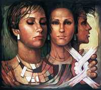 Durante muchos años, Jorge González Camarena pintó a su ideal de mujer mexicana: ojos profundos, cabello azabache, piel morena, bien formada, un tanto corpulenta, segura de sí misma, majestuosa.
