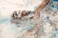 Hay artistas que desde sus inicios definen un estilo particular que desarrollan con pocas variantes formales, por ejemplo Ricardo Martínez o Pedro Coronel. En el caso de Arreola, quizás sea muy pronto para hablar de un estilo pictórico, pues en cada muestra hemos visto obra muy diversa entre sí. Sé que una especialista connotada le ha sugerido intentar ceñirse a un lenguaje preciso para perfilar un estilo más personal, pero Guillermo tiene ansias de explorar muy diversos parajes y por eso se mueve libremente entre la abstracción y la figuración, y cada vez expande su cromatismo a combinaciones más osadas. Comenzó indagando en la abstracción con obras de pequeño y mediano formato, en las que sobresalía una factura muy cuidada y el gusto por una paleta sobria y mesurada, predominantemente sombría. Estas piezas eran apenas la expresión contenida del torbellino que lleva dentro. Sin embargo, sus demonios internos no le dan tregua y poco a poco ese torrente de creatividad ha aflorado en pinturas más audaces y ambiciosas, que son el reflejo de esa necesidad de búsqueda auténtica que no repara en modas ni en las demandas del mercado. La evolución en su trabajo pictórico corre paralela a su profundo conocimiento de la historia del arte universal, en tanto que veladamente se vislumbran entre las numerosas capas de óleo y los claroscuros de sus lienzos ecos de Turner, de Kooning, Motherwell, Schnabel o Clemente, por mencionar algunos, y atmósferas evocadoras e inasibles cercanas a las de los cineastas Tarkovsky o Angelópoulos. Su sello distintivo es la emotividad que se palpa tanto en las composiciones abstractas como en algunas figuras recientes que alcanzan un alto grado de expresividad.
