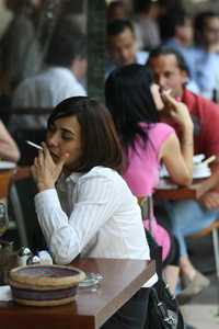 Diversos momentos en que los fumadores pudieron disfrutar ayer del tabaco. Muchos de esos casos, en terrazas de restaurantes de la colonia Condesa, en la delegación Cuauhtémoc