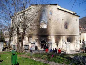Desde que la alianza de la otan (integrada por muchos de los países firmantes de la Convención de la Haya , en 1954) intervino en Kósovo, se toleraron amenazas y daños al patrimonio cultural serbio en tierra kosovar. Las consecuencias aún son incalculables: monasterios e iglesias, que nunca fueron metas estratégicas, tampoco tuvieron el debido resguardo como bienes espirituales y culturales. Así, se toleró que los extremistas albaneses, encabezados por el Ejército Liberador de Kósovo, además de los asesinatos, secuestros y violación de la población serbia, saquearan, incendiaran y minaran las iglesias ortodoxas, los monasterios y otros objetos eclesiásticos.