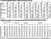 En este periodo de 14 años (1993-2007), el producto que presenta el mayor crecimiento es el caolín (531.7%), aunque es poco relevante y errático, seguido por la fluorita (281.7%), el molibdeno (279.5), el feldespato (261.9) y el oro (253.9%). El índice de producción de la plata se ubicó en 2007 en 95.6 puntos, esto es, -4.3% debajo de la producción de 1993.