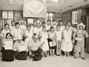 Los seleccionados son indígenas nahuas y totonacas que además de socios activos, han sido promotores y directivos de sus comités y cooperativas locales. Algunas como Aurelia Cuamait, presidenta de la Regional de Mujeres de la Tosepan , tiene casi 15 años participando; o Irene, que bordea el medio siglo y lleva 18 de cooperativista; o Maria Libia, también en la medianía de la edad y originaria de Atalpa, que no se queda atrás en sus años de promotora de café orgánico y responsable de la Tosepantomi local; Leobardo, de 42 años con 12 en la cooperativa; o José Francisco, de 46 años y que empezó hace 30 como acopiador del beneficio húmedo de la Tosepan. También participan los jóvenes. Diez son candidatas, y eso es mucho decir porque se trata de mujeres indígenas que se han ganado a pulso su nombramiento: “A mí me eligieron –cuenta Irene– por la confianza que me tienen–. Y ahora voy a cumplirles”. La mayoría anda por los cuarenta años. Pero hay jóvenes muy jóvenes como Domingo de 20 años, inspector interno del programa orgánico de café, o Minerva de 26, los dos con preparatoria terminada. En realidad son varios los que tienen bastantes estudios, y hasta una licenciada en educación indígena es candidata. Pero las comunidades también votaron por campesinos digamos que rústicos, como don Juan Martín Teresa, con quien se hizo la excepción porque no acabó la primaria, pero creció con la Tosepan , es un experto productor de café y pimienta, y un cooperativista ejemplar. “No es fácil llevar la batuta de una organización tan grande –dice un candidato– donde hay de todo: acopio, beneficio y venta de café, ahorro y préstamo en más de 110 comunidades, viveros, programas de mujeres, turismo alternativo y el Kalta. Pero no tenemos miedo de defraudar, porque estamos preparados.”