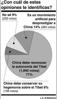 ¿Qué piensan los mexicanos sobre el drama que se desarrolla a miles de kilómetros de distancia, en Tíbet? A la vista de los Juegos Olímpicos de Pekín, se alzan voces en todo el mundo en favor de su autonomía. La mayoría de las personas que entrevistamos esta semana (71 por ciento) opina que China debe reconocer la independencia de Tíbet; otro sector (14 por ciento) cree que las protestas –inclusive el acoso a la antorcha olímpica en su recorrido mundial– constituyen un movimiento artificial para desprestigiar a China, y hasta hay quienes (6 por ciento) se manifiestan decididamente por que continúe la hegemonía china sobre los tibetanos.