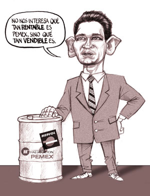 La privatización de la industria petrolera mexicana, atisbada por Alemán, propiciada por Salinas e impulsada por Zedillo y por Fox, y que Calderón busca culminar con una contrarreforma legal hecha en nombre de los intereses económicos de las grandes corporaciones multinacionales a las que él y sus allegados se encuentran vinculados, tiende sin embargo no sólo a consolidar el poderío de la Exxon Mobil, la Shell o la Repsol-YPF, y de paso a enriquecer aún más a quienes gobiernan, y a empobrecer en consecuencia a la Nación mexicana, sino a algo todavía más grave: consolidar el control hegemónico de Estados Unidos sobre los enclaves estratégicos de México, pues ya tiene bajo su control el espacio aéreo, las costas, los aeropuertos, las aduanas, los puertos marítimos y los cuerpos de seguridad, y ahora se le pretender abrir de par en par las puertas para que pueda disponer de las riquezas estratégicas del país.
