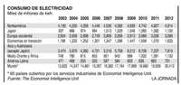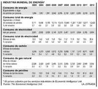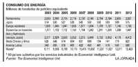 Economist Intelligence Unit (EIU) espera que el consumo total de energía crezca apenas por abajo de 3.6% este año y el próximo, manteniendo el índice de crecimiento de los dos años anteriores, para luego crecer a un tasa anual de 3.4% hasta 2012. Dentro de esta previsión, que cubre las 60 economías más grandes, se espera que este año la demanda del petróleo crezca casi 2.2%, cerca de 77.5 millones de barriles por día (b/d), aunque dependerá del grado en que los países de la OCDE resulten afectados por la desaceleración económica y la manera en que China y otras economías de rápido crecimiento sorteen sus efectos.