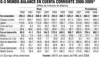Para 2008 el FMI calcula que las economías avanzadas en conjunto acumularán un déficit en cuenta corriente (intercambio total de bienes y servicios) de 464 mil millones de dólres, mientras que las economías en desarrollo acumularán en conjunto un superávit de 729 mil millones (Gráfico 3).