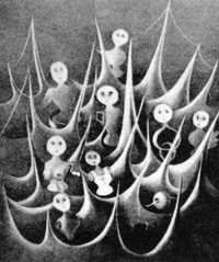 Tres obras de Remedios Varo: arriba, Frío, gouache sobre cartulina, de 1948; enmedio, Pintura, de 1936; abajo, Ruedas metafísicas, gouache sobre cartulina, de 1944 Los universos mágicos de Remedios Varo e Isabel Allende: fantasmas y espíritus, de Elena Morales, de Ediciones Idea