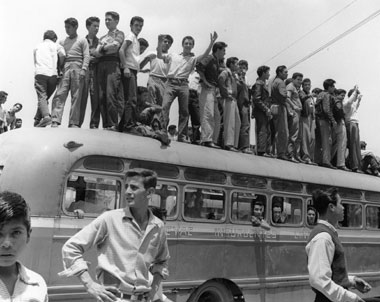 Hoy, en el contexto del Día del Maestro, presentamos este trabajo especial que da testimonio de una de las movilizaciones gremiales más importantes de México. Imágenes y textos que nos remontan a la génesis, 50 años atrás, de la lucha magisterial, aquella en la que sus dirigentes fueron incorruptibles, resistieron regaños, amenazas, intentos de soborno, palizas y cárcel. Asimismo, también se aborda la exaltación estudiantil de 1958, motivada por la inconformidad social ante el incremento en el costo de la vida. La protesta juvenil creció rápidamente alimentada por el descontento obrero y magisterial. A la izquierda, una escuela primaria, en 1956, en lo que hoy conocemos como Ciudad Nezahualcóyotl. A la derecha, toma de camiones en el Zócalo Fotos: Rodrigo Moya |
