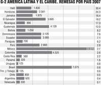 En su análisis Posibles escenarios e impactos de la crisis externa en la economía latinoamericana, el secretario ejecutivo saliente de la CEPAL, José Luis Machinea (quien entregará el cargo el 1º de julio a la economista mexicana Alicia Bárcena), destacó la incertidumbre global existente por la recesión en que ha entrado la economía estadunidense, aunque América Latina se aprecia hoy menos vulnerable que en el pasado. No obstante, considera que los mayores impactos de la desaceleración mundial en la región se harán sentir en las economías exportadoras de manufacturas, en las que tienen grandes necesidades de financiamiento (déficit en la cuenta externa corriente) y en las que reciben altos flujos de remesas (Gráfico 2), tres características que le vienen a México. En cuanto a los países y grupos latinoamericanos más pobres, es motivo de especial preocupación la marcada alza en los precios de los alimentos.