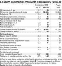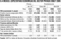 La inflación (precios al consumidor) en 2008 será según el gobierno de 3.7% y según el sector privado de 4.2%. El Banco de México registró una infación anualizada en el primer trimestre de 3.9%, y para el año la calcula en torno a 4.5%.