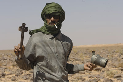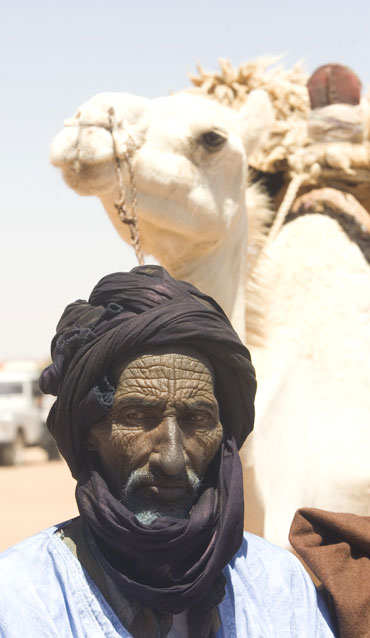 Esta antigua colonia del régimen franquista es el único país hispanohablante del mundo árabe, aunque sólo una minoría habla castellano, ya que la lengua cotidiana es un dialecto del árabe clásico, el hasania. Los intelectuales saharauis aseguran que fue Cuba y no España el país que acudió al “rescate del castellano” en el Sahara Occidental. Al salir al exilio, hace 30 años, la mayoría de la población era analfabeta; hoy sólo 30 por ciento no sabe leer. Sobre estas líneas, beduino espera a entregar un camello blanco (de buena suerte) al ganador del FiSahara |