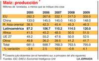Pese al pronóstico de una disminución aguda en la demanda de importaciones mundiales, otros exportadores diversos a EU tendrán que vender más maíz el próximo año. La mayor parte de la carga corresponderá a América Latina (AL). Tanto Argentina como Brasil tienen capacidad para producir más maíz, aunque el impuesto y otros gravámenes establecidos por el gobierno argentino sobre cereales y exportaciones de oleaginosas podrían mermar el entusiasmo de los agricultores. Sin embargo, es probable que la producción y las exportaciones de ambos países aumenten en 2008/09. En general, la producción de maíz mundial en 2008 podría ser de 764 millones de toneladas, 4 millones menos que en 2007. En 2009, mayores cosechas en EU y AL podrían generar una cosecha total de 795 millones de toneladas, suponiendo condiciones meteorológicas normales.