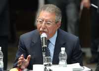 Francisco Rojas, Martín Esparza y Jorge Eduardo Navarrete, ayer en Xicoténcatl, durante el quinto foro de discusión sobre “Transición y seguridad energéticas”