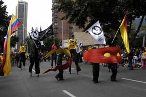 Sin duda, el ambiente político y social en Colombia era propicio para la generación de este tipo de propuestas; así, a la par de la intensificación de la violencia causada por los carteles de la droga, por ejemplo, comenzaron a surgir artistas como María Teresa Hincapié, quien fundó, por ejemplo, Acto Latino, una compañía pionera en el perfomance , y se proyectó aún más el trabajo de los grandes maestros del teatro colombiano, como Enrique Buenaventura, la figura más representativa de la dramaturgia, y Santiago García.