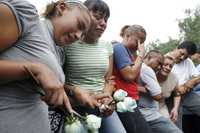 Familiares y amigos durante los funerales de Erika Rocha (arriba), y de Leonardo Amador, quienes murieron durante el tumulto causado por el operativo en la discoteca News Divine