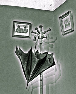 Machado olvidó un día su paraguas en el aula donde impartía clases en Baeza, actualmente el aula está tal cual la dejó su último día de clase. |