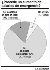 La inflación está saliéndose de control, los ingresos de las familias se empequeñecen frente al creciente precio de las mercancías. ¿Procede un aumento de emergencia a los salarios? En opinión de 77 por ciento de personas que entrevistamos esta semana, urge el incremento; 17 por ciento ve un inconveniente: desataría un alza en todo. Y el 6 por ciento restante tiene otras opiniones.