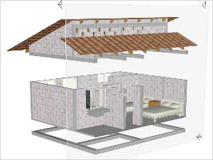 La diferencia resalta en la distribución espacial interior. Están diseñadas para ofrecer a los campesinos el espacio multifuncional al que están acostumbrados, ventiladas e iluminadas de manera natural. Se respetaron los usos sociales que los habitantes designan a cada espacio de su vivienda. Está provista de un área para ubicar una mesa y cuatro sillas para el comedor; un espacio para integrar la estufa y/o fogón para crear la cocina; el área de dormir está previsto para dos camas y el área de sanitario seco y regadera integrados a la vivienda.