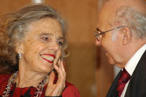 Recibiendo el premio Rómulo Gallegos por la novela El tren pasa primero |