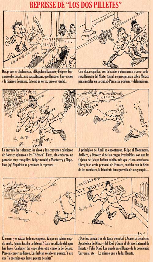 En el semanario “La Linterna” (Veracruz, No. 11, 1915) se satiriza a Francisco Villa y a Felipe Ángeles.