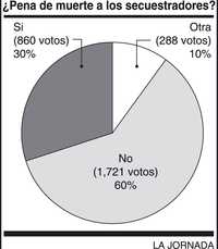 El secuestro y asesinato de un joven adinerado de la ciudad de México ha avivado el tema de las penas que deben ser aplicadas a los plagiarios. Aunque la mayoría de los encuestados de esta semana –2 mil 869 personas de distintas ciudades de la República– se pronunció en contra de la pena de muerte –60 por ciento–, sorprendentemente un 30 por ciento dijo que sí está de acuerdo en que se imponga la pena capital. Unos y otros, sin embargo, mostraron preocupación por las decisiones equivocadas que podría generar un sistema de justicia corrupto como el mexicano.