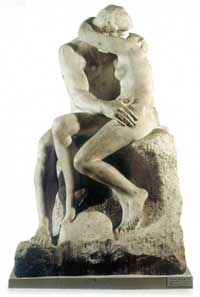 No hay la menor duda, Edvard conoció y admiró a Rodin, ese artista intrépido, aguerrido, incansable, hedonista, lúdico y genial entre los genios. Es seguro que durante sus largas estancias parisinas, Munch tuvo oportunidad de ver las esculturas de La puerta del infierno, soberbio altar en honor a la falibilidad humana: el hombre enfrentado a sí mismo, a sus pasiones, a sus insondables e inextinguibles contradicciones. Concebida como parte de ese conjunto escultórico, aunque a la postre haya quedado como obra independiente, Rodin esculpió El beso en 1885. Doce años más tarde, al hacer su propia versión, Munch utilizó su original estilo pictórico para recrear y rendirle tributo al insigne maestro francés. Y a pesar de la voluntad laudatoria, ¡cuán enorme es la diferencia entre la pintura y la escultura! Un abismo separa los temperamentos de estos autores. Dos personalidades excepcionales, pero situadas en las antípodas. Por un lado, la salud, el vigor sexual, el espíritu dionisiaco, la autoestima superlativa; por el otro, la enfermedad, la impotencia, las manías depresivas, la compulsiva inseguridad. Rodin versus Munch. Edvard admiraba y envidiaba todo eso que Auguste sí tenía y de lo cual él carecía: la personalidad arrolladora, el carácter hercúleo, la fortaleza titánica, la naturaleza autoritaria. Ambos fueron mujeriegos, es cierto, pero mientras Munch fue un eterno fracasado y renegado en cuestiones amorosas, Rodin en cambio siempre suscitó el furor sexual y la reciprocidad afectiva de numerosas damas (salvo el caso espectacular de Victor Hugo, ningún artista de aquella época tuvo tantas amantes como él). Esto, las diferentes formas de expresar su “voluntad de poder”, es lo que, como trasfondo, hace tan distinta la manifestación creativa que refulge en un beso con respecto al otro beso. Frente al temple angustiado y desmitificador de Edvard, emerge por contraste el ánimo jocundo y jubiloso de Auguste. Cierto: en la célebre escultura, cuando los jóvenes desnudos –sentados sobre un promontorio– contraponen sus cuerpos a fin de besarse con toda comodidad, surge de pronto una sensualidad que se derrama por todos los intersticios de la piedra, una pasión incandescente que se eterniza, una ternura que le confiere vida instantánea a la pareja. (Muy probablemente El beso sea un homenaje de Rodin a Camile Claudel, la genial discípula, la ayudante capaz de igualársele, la emocionalmente inestable mujer que lo deslumbró y a la cual al final abandonó para volver con Rose Bouret, la fiel y abnegada esposa. En todo caso, se trata de la celebración de un amor-pasión cuya cualidad inocultable es la trasgresión, una rebeldía lujuriosa que se disimula mediante la representación alegórica de Paolo y Francesca, esos personajes trágicos que deambulan en la Divina comedia.) Más allá de toda alusión histórica y literaria, ¿qué nos lega Rodin en su obra? La imagen del éxtasis, la visualización de dos seres jóvenes y hermosos acoplados en una simbiosis corporal y espiritual. Gracias al juego de luces y sombras, explayado con maestría sobre las cavidades y los relieves de la piedra, la carne de los amantes comienza a palpitar, sus caricias estimulan las feromonas, su sangre corre por el mármol, la piel se les enrojece, y el intenso calor que emana de ellos desemboca en la volátil experiencia del amor conjugado con la pasión. Esta forma impúdica de gozar el placer del beso escandalizó a la sociedad mojigata de aquel tiempo, razón por la cual la escultura fue censurada en Inglaterra; en Estados Unidos y, sólo de manera restringida, pudo verse hasta la Exposición de 1893.