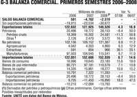 Las importaciones totales crecieron 14.6% sobre 2007 (11.5% excluyendo los productos petroleros); las de bienes de consumo, 18.0% (7.2% sin productos petroleros); las de bienes de capital, 15.2%, y las de bienes intermedios, 13.8% (11.5% sin insumos petroleros).