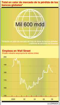 Es todavía imposible determinar el perjuicio total de la crisis crediticia. El Instituto Internacional de Finanzas estima el quebranto bancario en 476 mil mdd. Menor aún a 600 mil mdd de las quiebras de los bancos estadunidenses durante la crisis de los años 90; sin embargo, mil 600 mdd han sido reducidos de la capitalización bancaria del mercado global.