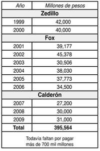 El presidente Felipe Calderón decidió aumentar en mil millones de pesos el presupuesto del Fobaproa el año próximo; en cambio, la UNAM no recibirá un solo peso más. ¿Por qué tendría que ser de otro modo? Es un egresado de la Escuela Libre de Derecho, inclusive se dice que es de los rechazados de la universidad nacional. En cambio, fue el candidato del Fobaproa, las grandes empresas beneficiadas por el llamado rescate bancario lo apoyaron sin reservas. Los recursos que la UNAM recibe del gobierno central provienen de tres rubros presupuestales: educación superior, 12 mil 981 millones; educación media superior, 2 mil 670; posgrado, mil 470, y cultura, 238 millones, cifras redondeadas que no rebasan los 20 mil millones. Básicamente es el mismo presupuesto del año anterior. Calderón ha sido extraordinariamente generoso con el Fobaproa, como puede verse en la gráfica que aparece en esta página, que consigna las partidas que han salido del erario federal a lo largo de los sexenios de Zedillo, Fox y el propio Calderón. El saqueo explica en parte el estancamiento de la economía nacional.