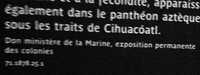 El agravio tonto: en la cédula de la pieza se asienta que proviene “de la costa del Golfo, Mesoamérica”, y que es una donación “de la Marina, exposición permanente de colonias”. Todo iba muy bien, pero semejante majadería obliga a evocar el pillaje castrense perpetrado por el régimen de Luis Bonaparte en el México del siglo antepasado y que, de seguro, no se limitó a piezas arqueológicas invaluables; eso, sin contar que nuestro país sufrió una invasión y una ocupación criminal y cruenta y hubo de soportar la imposición de un imperio pelele, pero no fue jamás colonia de Francia. Al parecer, el embajador Carlos de Icaza González no se ha dado una vuelta por el museo Quai de Branly, o fue y vio y se retiró sin darle importancia al asunto, o bien pidió que quitaran esa referencia de tan mal gusto pero no le han hecho caso. Y aquí está un close up de la cédula, para que no vayan a salir con que estoy loco.