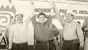 Los exdiputados locales del PRD, Alfonso Valenzuela Segura y Olegario Carrillo Meza, ambos dirigentes de la UNORCA, respaldan la candidatura del priista Eduardo Bours Castelo a la gubernatura de Sonora en 2003. Tres años después, el mismo Valenzuela alza el brazo de Felipe Calderón, entonces candidato panista a la Presidencia de la República.