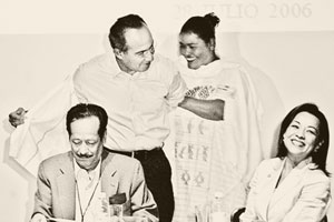 Reunión del 29 de febrero de 2006, en la que el priista y dirigente de la UGOCM-JL, José Luis González, en la foto, declaró presidente electo al panista Felipe Calderón, antes de que las elecciones hubieran sido calificadas.