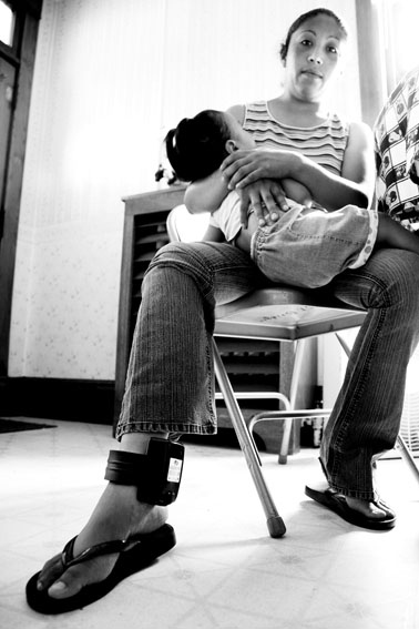 El 12 de mayo de este año, los agentes que imponen el cumplimiento de las normas de Inmigración y Aduanas (ICE por sus siglas en inglés) en Estados Unidos, cayeron sobre unos obreros de la planta empacadora de carne Agriprocessors en Postville, Iowa. Veinte minutos después de comenzado el turno, María Rosalía Mejía Marroquín vio gente corriendo más allá de la línea donde se encontraba cortando pechugas de pollo, y gritaban que la migra estaba en las instalaciones. Ella también corrió, y trató de escurrirse entre dos enormes cajas en una de las oscuras bodegas. “Llegaron hombres con linternas. Uno me apuntó con su pistola en la cara mientras me gritaba, ¡nadie se va escapar!, recuerda. Cuando la interrogaron, le dijo a los agentes que tenía una hija que alguien estaba cuidando, pero les mintió y no les dijo dónde vivía la niñera, por temor a que se la llevaran a ella también. Finalmente los agentes le ajustaron un dispositivo electrónico de monitoreo en el tobillo, y le dijeron que tendría que esperar la audiencia.