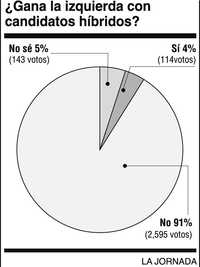 Posiblemente los dirigentes del PRD obtendrán alguna ventaja personal, pero la izquierda sale perdiendo con las alianzas para postular candidatos híbridos con otros partidos. En ese sentido se pronunció 91 por ciento de los participantes de la encuesta de esta semana, al contestar la pregunta: “¿Gana la izquierda con las alianzas?” Sólo 5 por ciento se pronunció en sentido opuesto.
