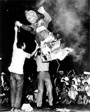Quema de un monigote que representaba a un granadero, en el Zócalo, el 13 de agosto Foto Rodrigo Moya |