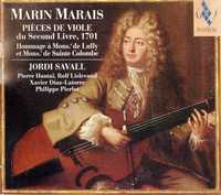 Pero lo que más fascina es abrir el cuadernillo (qué digo cuadernillo, en realidad es un libro, hecho y derecho. Bello y decidor) de uno de estos álbumes y ¡fascinación!: Jordi Savall narra en uno de los textos que contiene este volumen, que fue precisamente en la Casa Beethoven, “el establecimiento de música situado en el número 97 de las famosas Ramblas”, donde encontró las partituras que no sólo modificaron su vida, sino el transcurso entero del rumbo de la música, al menos de una fracción sublime y bella, intensamente bella, de la música que es la producción, más de 500 obras, que nos heredó Marin Marais, músico que nació hace 350 años en París, que murió 72 años después y que volvió a nacer hace 40 años, que es cuando Savall grabó el primero de sus más de cien discos, que poseen naturaleza variopinta y varios de ellos, entre los cuales están los que ahora compartimos en el Disquero, dedicados precisamente a la música de Marais.