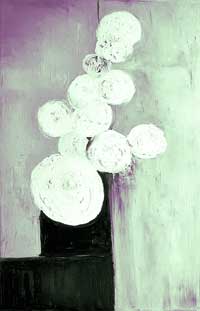 En su lenguaje no figurativo, Edurne evoca los sabores, sensaciones, formas y colores de las creaciones gastronómicas y los traduce en guiños poéticos de una manera muy libre y desenfadada, sin ninguna intención de representación literal. Los platillos de estos chefs son decorados con tal esmero que, al llegar a la mesa, el comensal se encuentra frente a pequeñas piezas escultóricas cuidadosamente compuestas por la sutil combinación de elementos que sorprenden al paladar y deleitan la vista. Así, en las pinturas de Edurne aparecen ahora los círculos que aluden al misterioso proceso de “esferificación” de los alimentos; las manchas perfectamente trazadas con espátula que adornan los platos, y la elección de colores que hace eco a ciertos ingredientes culinarios que han quedado registrados en la memoria de la artista, como los rojos profundos de la remolacha o los insondables cafés de los chipirones, el chocolate y el mole.
