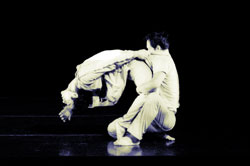 La Dirección de Danza de la unam presentó una temporada conformada por cuatro compañías cuyas sedes están en estados de la República. Después de Delfos, vino Antares, con Tu hombro, de Miguel Mancillas. Esta depurada obra, que ya he abordado antes, refleja los intereses del coreógrafo relacionados con la exposición de la intimidad del individuo frente al Otro, y los conflictos que surgen de este choque. Mancillas se ha distinguido por el cuidado que presta a los detalles de producción y Tu hombro no es la excepción. El coreógrafo modifica el espacio con bastidores que penden inclinados del techo y la acción se desarrolla en un pasillo de practicables en proscenio en un escenario desaforado, de esta manera modifica la perspectiva, creando un efecto de mayor profundidad. Los personajes se relacionan en este ámbito “de fuga” en el que intermitentemente irrumpen imágenes de video al fondo; los bailarines van vestidos monocromáticamente con colores terrosos y de blanco, y además son iluminados con lámparas que son parte de la misma escenografía. Las connotaciones de desamparo sugeridas por los carcelarios espacios y el vestuario –que los bailarines se quitan para inevitablemente tener que volvérselo a poner– tienen una relación directa con las imágenes proyectadas, en las que los angustiados personajes quieren romper el encierro en un baño. Estos elementos tienen una gran carga simbólica que incide en el discurso coreográfico propiamente dicho. Los baños como espacio de segregación genérica (en los que el único personaje femenino aparece inerte y cubierto por plástico) y el área restringida en la que se desenvuelven los varones uniformados, son elementos significantes que, junto a otros, no han sido suficientemente explorados por la crítica –desde mi perspectiva la obra abraza una especie de falacia intencional. Tu hombro es una obra enigmática, con mínimas debilidades, que por fin llega a un teatro como el que merece un espectáculo de su nivel.