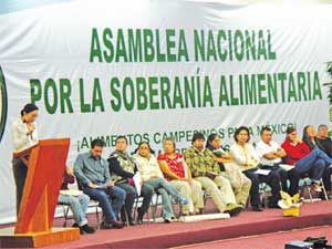 Autoridad pasmada. Coincidió con Enrique Pérez, de la Asociación Nacional de Empresas Comercializadoras de Productores del Campo (ANEC), en que vía esta campaña, es que se han captando impresiones, preocupaciones y propuestas de los campesinos y de los consumidores. “Y el siguiente logro será decirle al gobierno qué tiene que hacer para enfrentar esta crisis (de alimentos) pues urge tomar acciones, y hasta ahora el gobierno está pasmado”, señaló San Vicente. Según Enrique Pérez, con la campaña “la sociedad civil cobra relevancia, y ello se observó en la asamblea nacional”, donde, con una audiencia de 600 personas, en su mayoría campesinos procedentes de 15 estados, además de representantes de Guatemala y Honduras, se reflexionó sobre temas fundamentales” como la desnutrición infantil y la obesidad y enfermedades crónico-degenerativas fomentadas por comida chatarra, los transgénicos, la crisis global alimentaria, los tratados de libre comercio, el papel de la mujer en un modelo alternativo, los agrocombustibles, el cambio climático, la necesidad de reservas alimentarias, los mercados alternativos, la migración y el derecho a ser campesino.