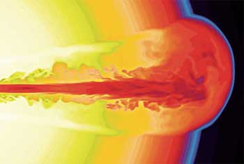 A 4 mil 100 metros sobre el nivel del mar, en las faldas del volcán Sierra Negra, en Puebla, se instalará el hawc , un arreglo de novecientos tanques de agua de cuatro o cinco metros de alto y de tres a cinco de diámetro. Para explicar cómo funcionará este arreglo basado en la detección de radiación Cherenkov –nombre que se le da en homenaje del científico que la descubrió–, la doctora Magdalena González, responsable nacional de la parte científica del observatorio, asegura que los rayos gamma o fotones se comportan como partículas, por lo que se les detecta uno a uno. “Los fotones que llegan del universo interactúan con las moléculas de la atmósfera, dan lugar a la formación de un electrón y un positrón, y éstos a su vez interactúan con otras partículas, producen más rayos gamma, los cuales originan más electrones-positrones y otras subpartículas como los neutrinos y muones, que nuevamente producirán rayos gamma. Este proceso origina un chubasco o cascada de partículas que viaja a una velocidad mayor a la de la luz en la atmósfera (cabe aclarar que en el vacío del universo, la luz es el objeto que viaja a mayor velocidad –a 300 mil kilómetros por segundo–, sin embargo, en la atmósfera terrestre o en otros medios, esta velocidad disminuye y otras partículas pueden viajar más rápido.)”