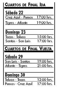 En Torreón se confirmó la baja por lesión de Christian Benítez, quien inclusive al recuperarse podría ir a Europa, y el técnico Daniel Guzmán pidió dedicarle todos los partidos. En tanto, Miguel Herrera, técnico de Tecos, dijo en Zapopan que la liguilla no es justa, pues Chivas terminó dentro de los ocho primeros, pero “no se pasa por justicia sino porque así está reglamentado”.