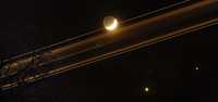 Esta exposición de tiempo muestra las estelas de un jet al enfilarse para su aterrizaje en el aeropuerto de Charlotte-Douglas, en Carolina del Norte. Venus, en la parte inferior, y Júpiter, a la derecha, se aproximan en el cielo del suroeste para alinearse con la Luna en creciente. La siguiente ocasión que estén visibles y tan cerca, como en esta semana, será el 18 de noviembre de 2052, de acuerdo con lo señalado por Jack Horkheimer, director del planetario de Miami