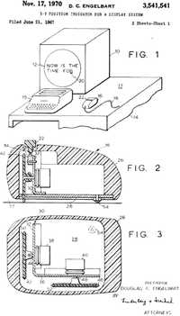 El invento de Engelbart era una cajita de madera así, bien pinche, de cuya parte inferior sobresalían unas ruedas metálicas que, al desplazarse por una superficie cualquiera, se movían en un eje vertical y otro horizontal, y en la parte superior tenía un solo botón, tan rojo como el que inicia la Tercera Guerra Mundial. Fue patentado con el nombre poco atractivo “X-Y position indicator for a display system”. Lo impresionante de la ocasión no eran los dispositivos, sino las ideas: con monitores monocromáticos de tubos de rayos catódicos y con teclados electromecánicos se mostraban las posibilidades de un entorno gráfico con ventanas, de la multimedia y de las conexiones en red.