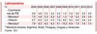 En México se pronostica que el crecimiento de PIB caiga a 0.2% en 2009, por abajo del ya débil 1.8% de 2008, y existe el riesgo de que el pronóstico para 2009 se reduzca. Esto refleja la debilidad del mercado estadunidense, destino de más de 80% de las exportaciones mexicanas. Como la inflación está muy por arriba de la meta oficial de 2-4%, el Banco de México no pudo reducir su política de tasas durante su reunión de noviembre de 2008, la cual la elevó en 75 puntos básicos a partir de mayo. La reciente devaluación del peso tendrá cierto impacto inflacionario, pero se verá atenuada por la caída de los precios de materias primas, por lo que EIU espera que la inflación decrezca a partir de principios de 2009. Esto permitirá que el banco central reduzca tasas el próximo año, lo que, junto con estímulos fiscales y mayor inversión en infraestructura, debería atemperar el impacto de la crisis estadunidense.