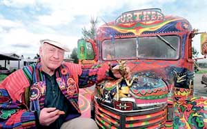La ineficacia económica del ácido lisérgico, desde la perspectiva de las corporaciones, fue sin duda un aliciente más para añadirlo a la infame lista de sustancias prohibidas el 6 de junio de 1966. El medicamento, sintetizado por Albert Hoffman para los laboratorios Sandoz, que fue utilizado como enteógeno en rituales de la Antigüedad clásica en la forma de un hongo del centeno –claviceps purpurea– mezclado en el pan, y que la rebelión hippie de los años sesenta consagró como alimento sacramental, se agregó a la categoría que por mal nombre lleva el de “narcóticos”. Súbitamente, las travesuras de Kesey y los pranksters se habían vuelto actos criminales. Kesey sentía el cerco cerrarse poco a poco y a fin de cuentas regresó a Estados Unidos, donde enseguida fue arrestado por posesión y consumo de marihuana. Recibió sentencia de cárcel, que cumplió resignadamente durante cinco meses. Ahí, como en Manzanillo, recordaba el pueblo de su niñez, la granja del padre, en el Oregon frío y lluvioso, y tan pronto obtuvo su libertad adquirió una propiedad rural en esos territorios, adonde se fue a vivir el resto de sus días. Años después, el camión psicodélico Furthur se estacionó para siempre en los espacios de la granja, donde aún permanece. En marzo de 1987, los académicos de la Universidad de California en Berkeley se propusieron celebrar unas jornadas en conmemoración del Love- In de veinte años atrás, e invitaron a Ken Kesey, entre otros, a una serie de charlas y paneles que se celebrarían en el Palace of Fine Arts de San Francisco. Aprovechando una residencia extraoficial en el departamento de fotografía de la Universidad, me las arreglé para participar como fotógrafo del evento.